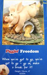 ![]() ![]() Piggin Mondays (June 1997) Worldwide LE 203/3500 All the pigs are hiding away because they just can’t face another Monday!! height 15cms Length 25cms $695 TAKE PHOTOS FROM CABINET | ![]() ![]() Piggin Freedom When you’ve got to go, you’ve got to go Go On Mate Go for It Height 10cm $149 |